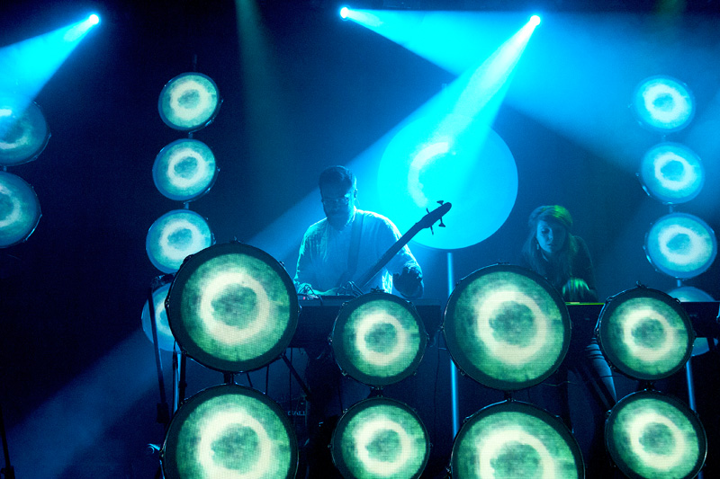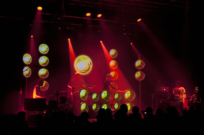 Na Hidden Orchestra se čekalo trochu dlouho, nejspíš čekali i oni někde za rohem, zvukař připraven, vše nachystáno, fanoušci netrpěliví, důvod průtahů neznámý. Těsně před začátkem jsme se snažili ohleduplně procpat (není to protimluv) pokud možno dopředu a doprostřed, což se podařilo (byla tam skulina), očekávali jsme hodně a chtěli tomu být nablízku. Pak nastoupila kapela, začala svůj set a bylo by to naprosto skvělé, nebýt obludně přehuleného zvuku, především v basové části spektra (baskytara a elektronika). Vydrželi jsme do druhé skladby, v níž se situace sice o něco zlepšila, ale k optimu měla hodně daleko, a tak jsme doslova prchli až úplně dozadu. Pokud bylo na koncertě HO něco špatně, byla to hlasitost.