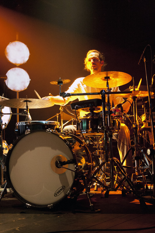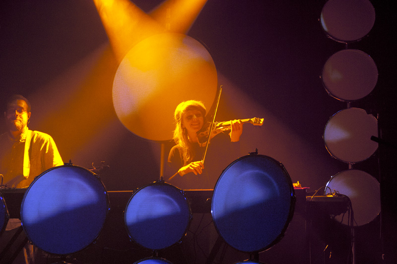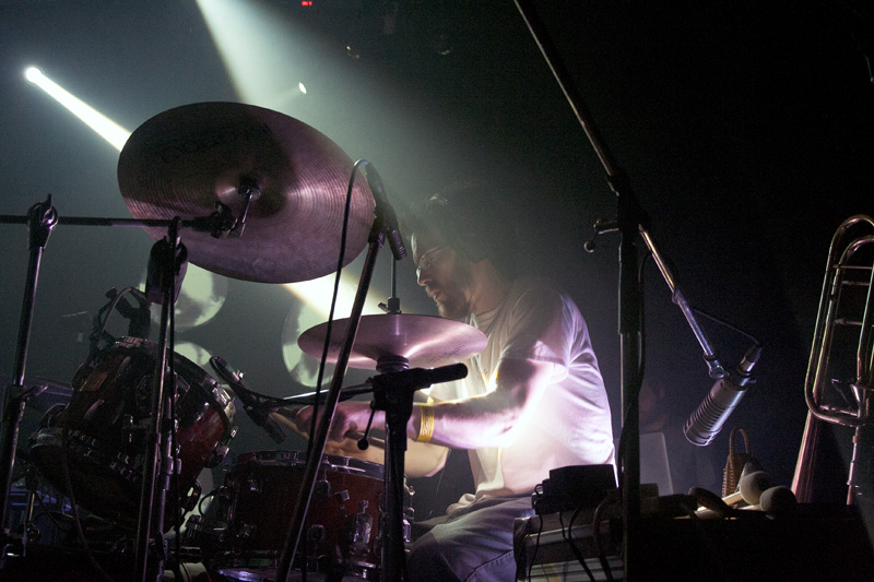 V ostatních ohledech bylo vystoupení bezvadné, HO se prezentovali jako velmi sympatická formace, profesionální i hravá zároveň. S ohledem na svůj naturel jsem si nejvíc užíval souhru bubeníků, kteří dokázali hrát jak ve vzájemném souladu a skladbu rytmicky stupňovat, tak si poskytovat prostor a předávat štafetu. Zapojení elektrických houslí a trombónu bylo občasné, ale o to více působivé, i když díky hlasitosti ostatní produkce byla jejich pozice hodně ztížena. Kromě zmíněných bicích je ale hudba HO založena spíše na atmosféře a vyznění celku než na individualitách jednotlivých nástrojů, což je ve zmíněném Radkově článku dobře přirovnáno k pocitům z filmové hudby. HO skutečně působí jako jedno silné těleso, jen místy obohacené najazzlými vyhrávkami toho kterého nástroje, které sází na sílu a podmanivost souhry všech zúčastněných. A to se na Flédě povedlo.